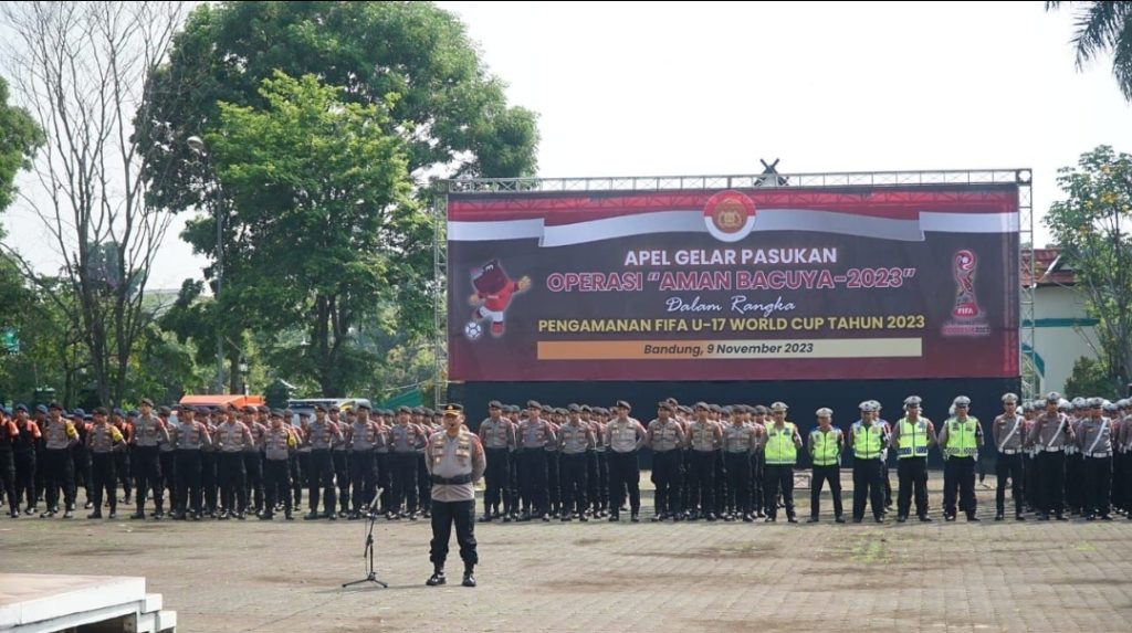 Bandung – Sehari jelang pertandingan, Polda Jawa Barat melaksanakan Apel Gelar Pasukan Operasi “Aman Bacuya-2023” dalam rangka Pengamanan FIFA U-17 World Cup tahun 2023.