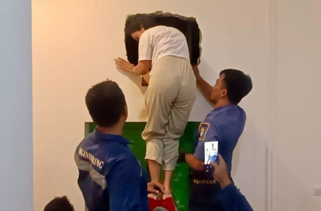 “Setelah melakukan pengukuran yang akurat, akhirnya lubang pembobolan tembok tersebut tepat berada di ruang lift yang didalamnya terdapat 9 orang yang terjebak,” katanya.