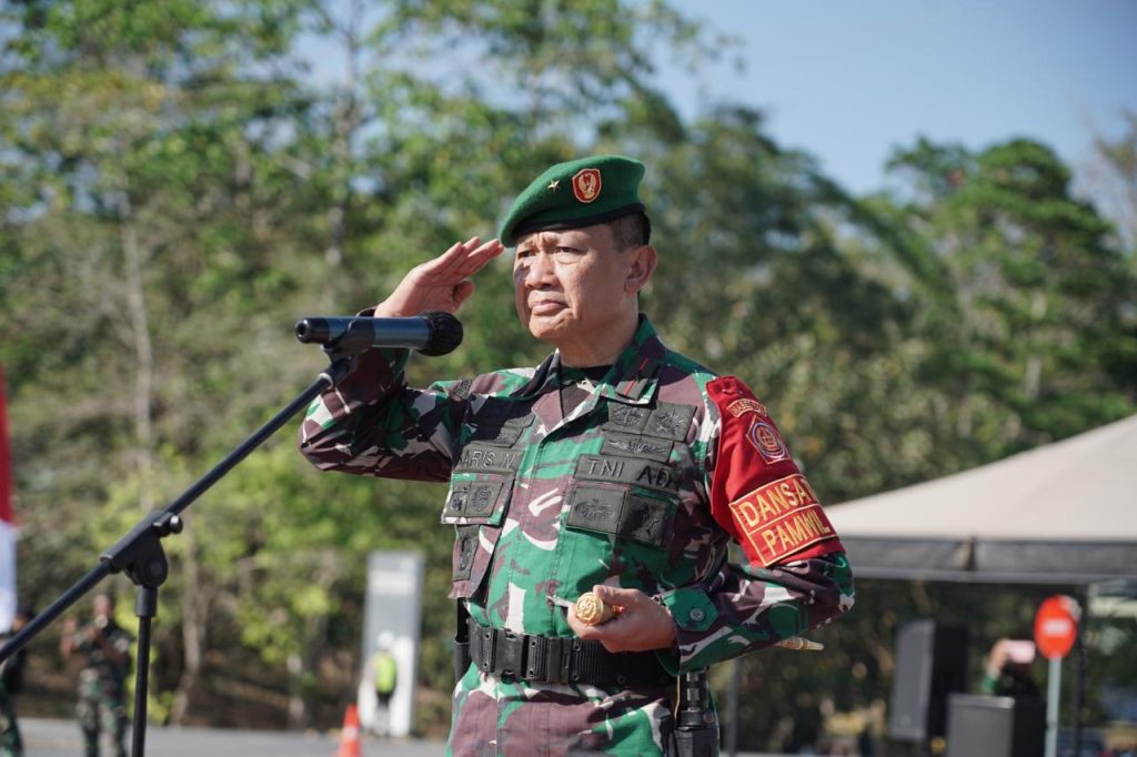 Arahbaru.id, SUMBAWA BARAT NTB – Komandan Resor Militer (Danrem) 162/Wira Bhakti Brigjen TNI Sudarwo Aris Nurcahyo, S.Sos., M.M, memimpin apel gelar pasukan pengamanan VVIP, yaitu pengamanan terhadap Presiden Republik Indonesia Ir. H. Joko Widodo yang akan melakukan kunjungan kerja di wilayah Kabupaten Sumbawa Barat Propinsi NTB pada tanggal 20 Juni 2023,. Apel gelar pasukan ini diikuti sekitar 1.070 personil bertempat di Lapangan Pemadam PT. AMNT ( Amman Mineral Nusa Tenggara) Kec. Sekongkang Kab Sumbawa Barat, Senin (19/6/23).