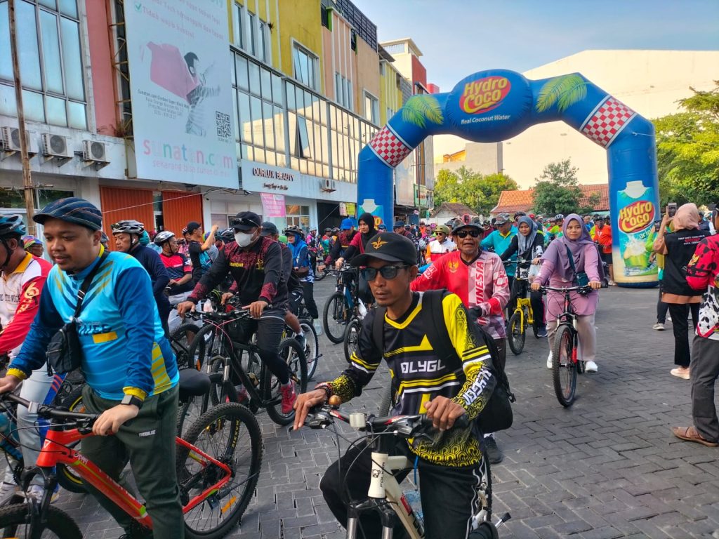 Kemeriahan HUT Kota Cirebon ke-654 dan Hari Koperasi Nasional ke-76 tahun salah satunya terlihat pada kegiatan gowes yang diikuti oleh sekitar ribuan peserta dari berbagai komunitas.