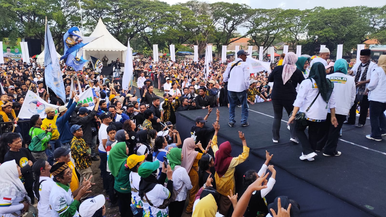 Ribuan masyarakat dan simpatisan sejumlah partai tumpah ruah. Selain ingin mendengarkan kampanye dari Paslon dengan jargon “Idola”, masyarakat juga menikmati hiburan dari penyanyi yang sengaja dihadirkan dalam kampanye tersebut.