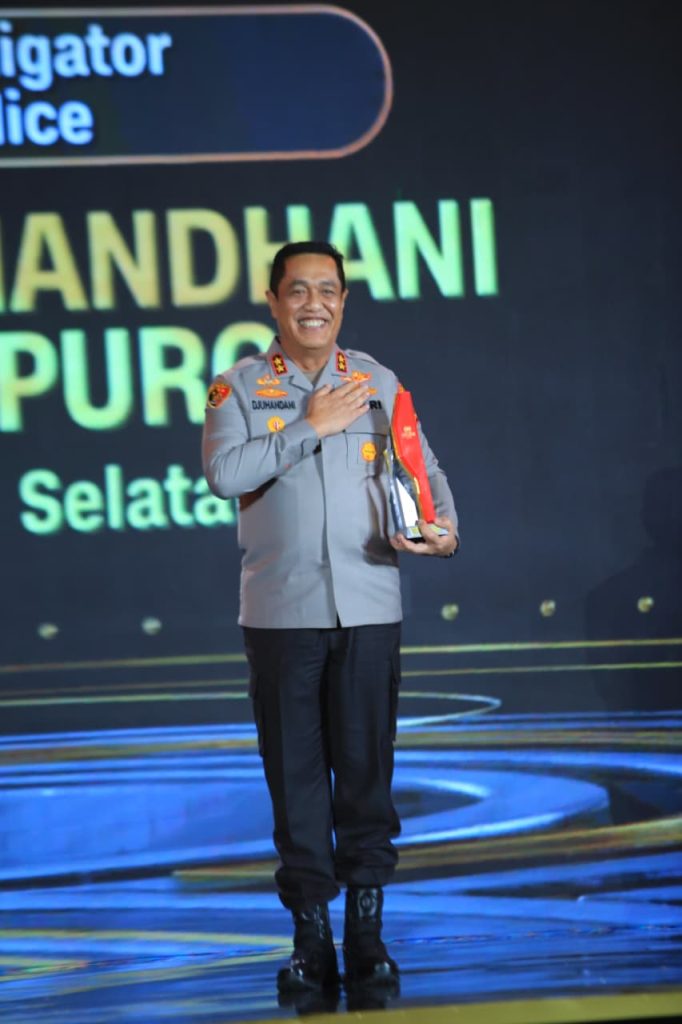 MAKASSAR,- Kepala Kepolisian Daerah Sulawesi Selatan (Kapolda Sulsel) Irjen Pol. Djuhandani Rahardjo Puro, S.H., M.H., menerima penghargaan Best Criminal Investigator of Indonesian Police dalam ajang CNN Indonesia Awards 2025 yang digelar di The Ritz-Carlton Jakarta, Mega Kuningan, pada Jumat (31/10/2025).