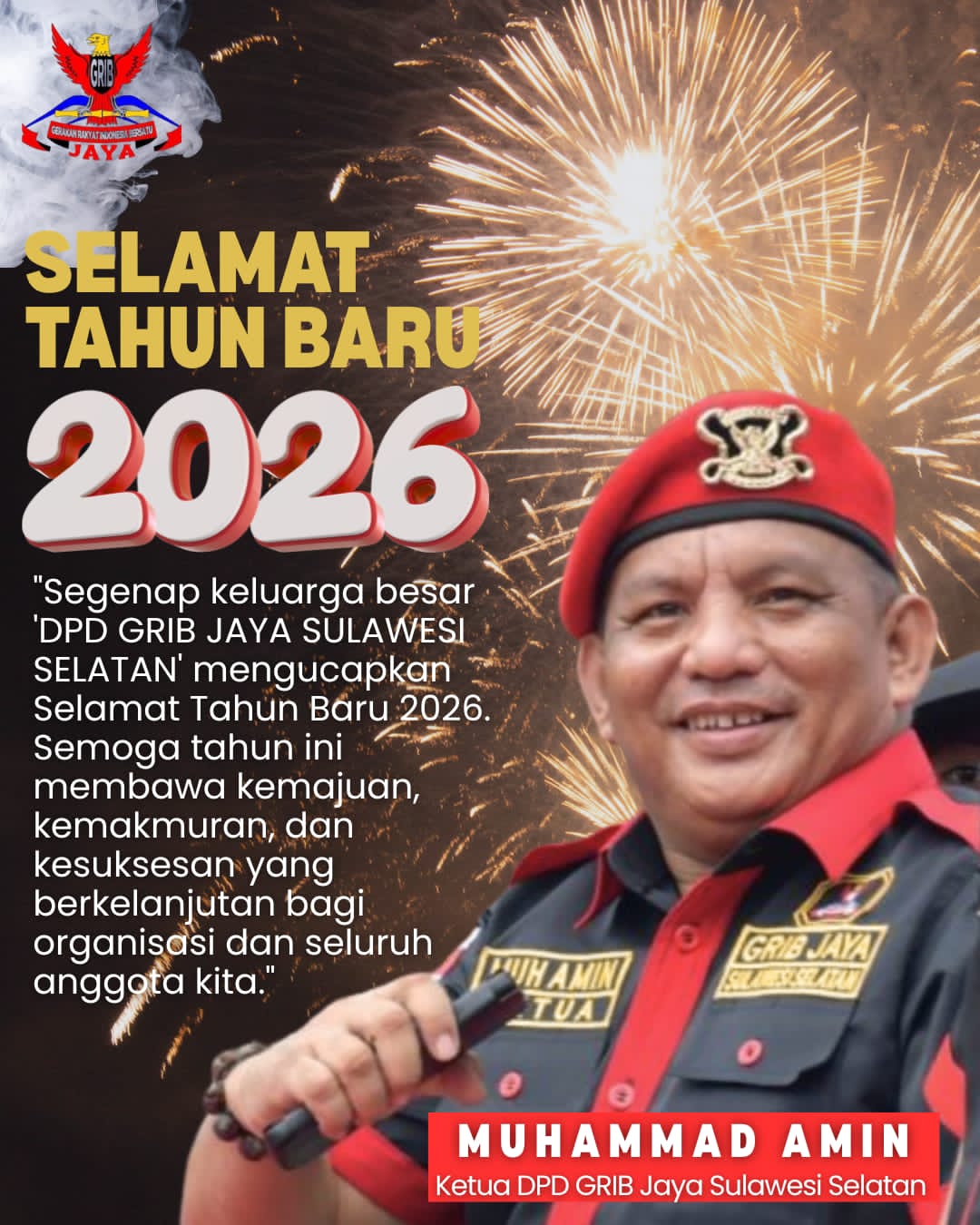 Ketua DPD Grib Jaya Sulsel Ucapkan Selamat datang Tahun Baru 2026, Tetap Kompak