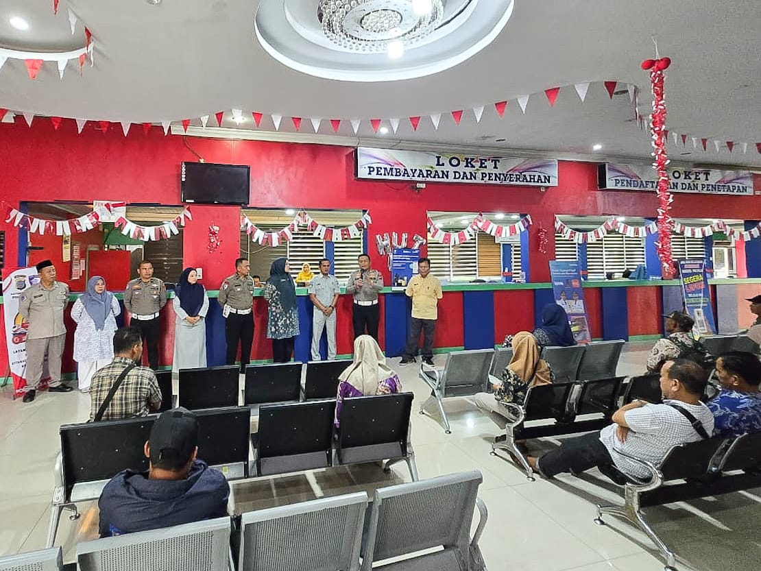 Selain itu, Jasa Raharja juga ikut serta melaksanakan doa bersama dan pembagian helm kepada masyarakat di lokasi layanan Samsat Induk. Sebanyak 25 helm di setiap titik dibagikan langsung kepada wajib pajak yang datang, disertai pesan singkat keselamatan, seperti