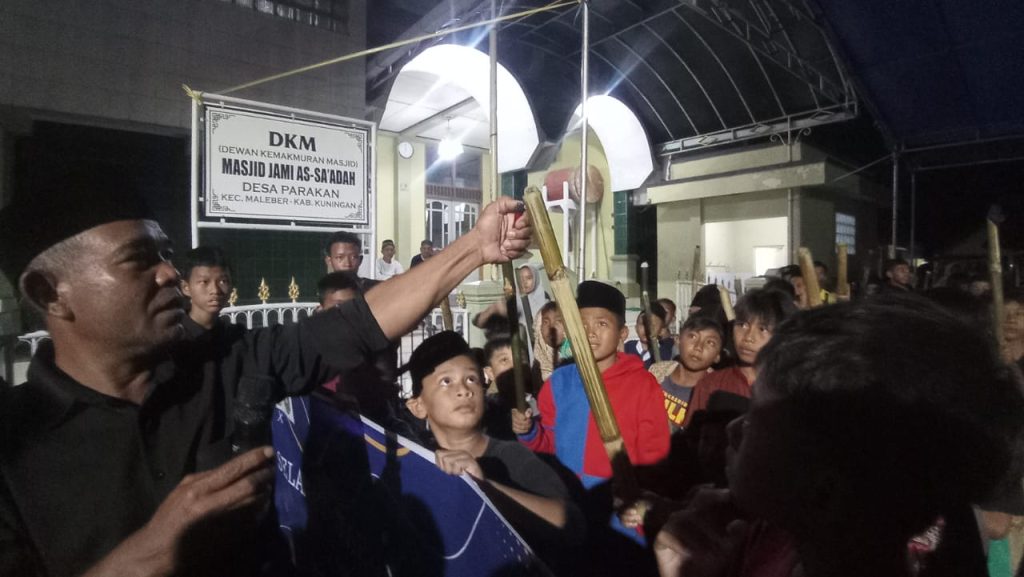 arahBaru,Kuningan-Dewan Kemakmuran Masjid Desa Parakan (DKM)menggelar pawai obor dalam rangka menyambut tahun baru Islam 1 Muharram 1445 Hijriah, Selasa(18/07/23).