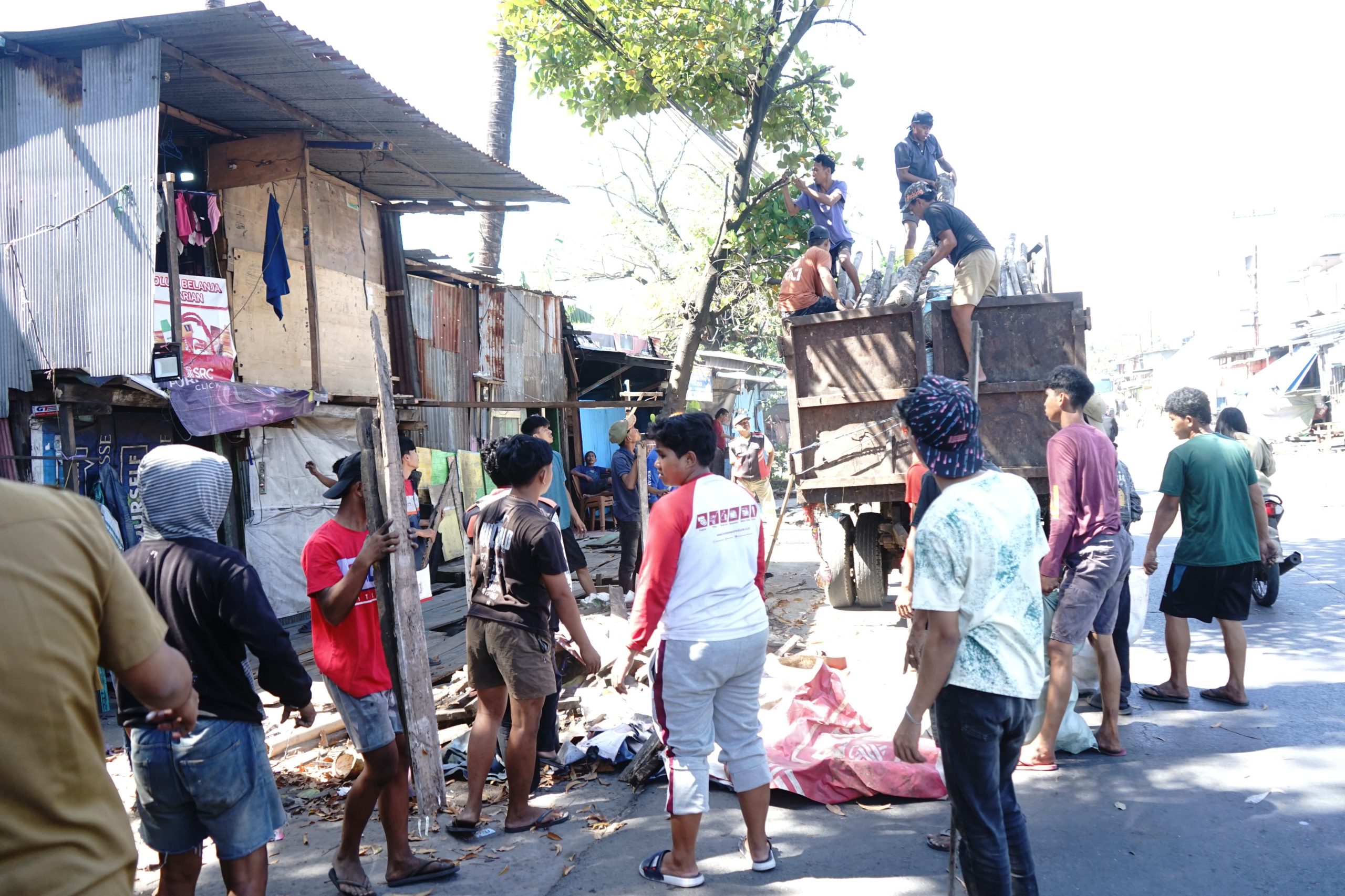 Lurah Kaluku Bodoa, Alwan Januar Setiawan, S.STP., melalukan pembersihan sisa bongkaran secara mandiri oleh para pemilik lapak yang berada di Jl. Galangan Kapal sekitar lampu lalu lintas.