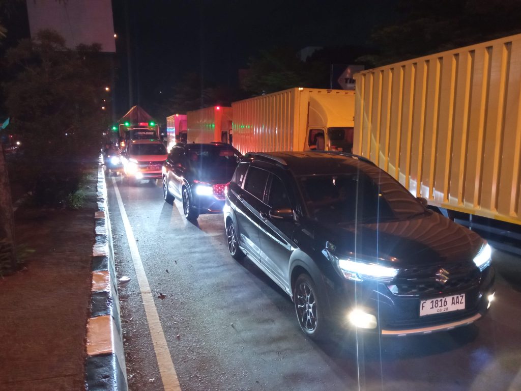 Pantauan Sabtu (13/4) malam, jumlah kendaraan mulai memadati jalur arteri. Kendaraan yang didominasi bus dan truk muatan sedang ini kebanyakan memang “muntahan” dari Tol Cipali menyusul pemberlakuan One Way.