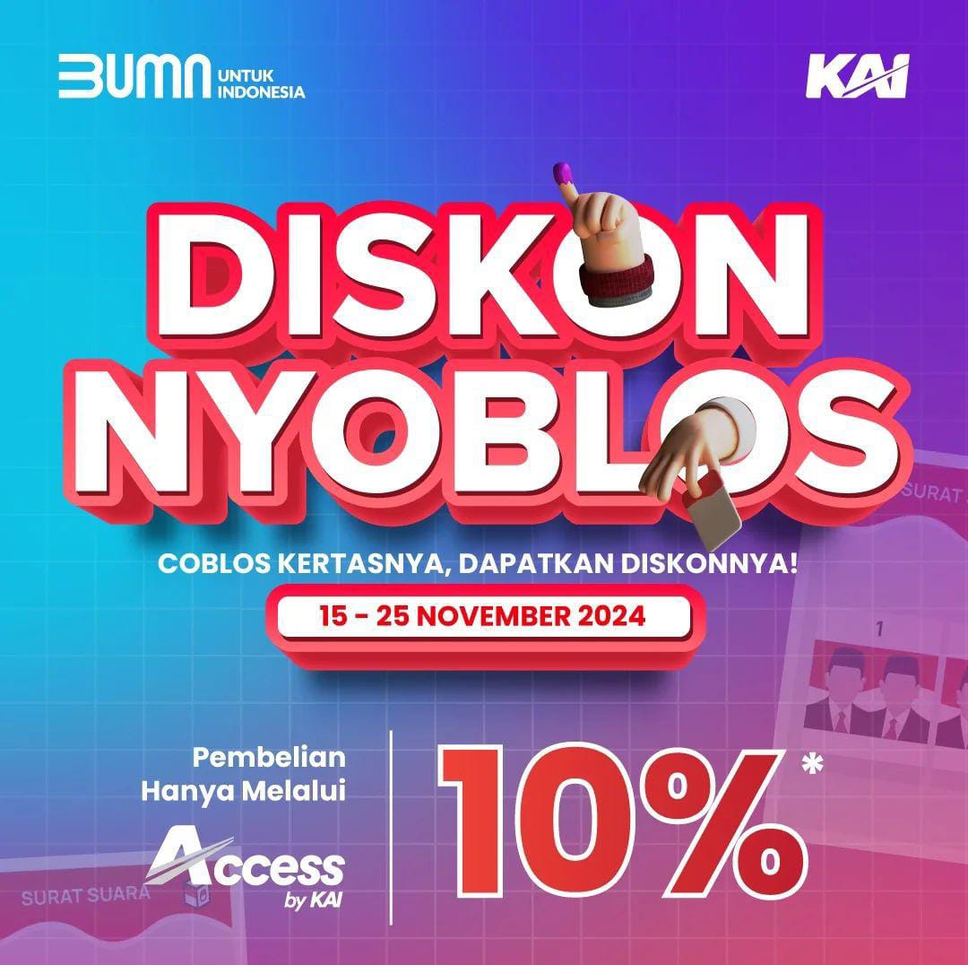 ARAHBARU, Cirebon – Dalam upaya meningkatkan minat masyarakat dalam menggunakan transportasi kereta api selama Pemilihan Kepala Daerah (Pilkada) Tahun 2024, KAI kembali menawarkan potongan sebesar 10 persen untuk tiket kereta api komersial antar kota. Program diskon ini berlaku untuk pembelian tiket yang dilakukan melalui platform Access by KAI pada periode 15 hingga 25 November 2024 untuk pemesanan pada 26 hingga 28 November 2024.