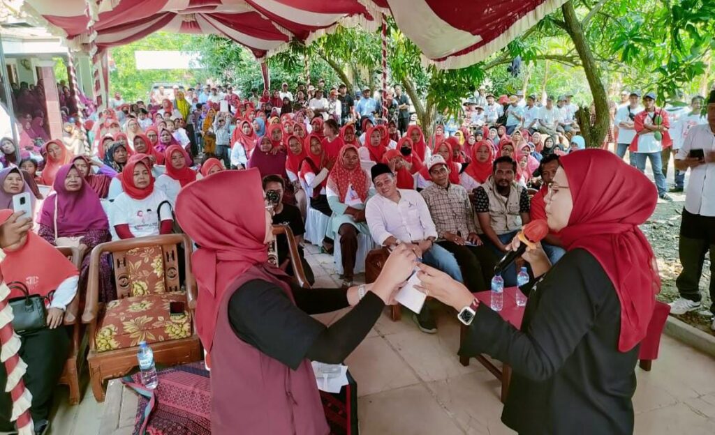 ARAHBARU, Indramayu – Ratusan masyarakat di enam desa di Kecamatan Bangodua beramai ramai datang ke titik lokasi kampanye dimana calon bupati Indramayu petahana Hj Nina Agustina akan menginformasikan program program unggulan selama memimpin kabupaten Indramayu.