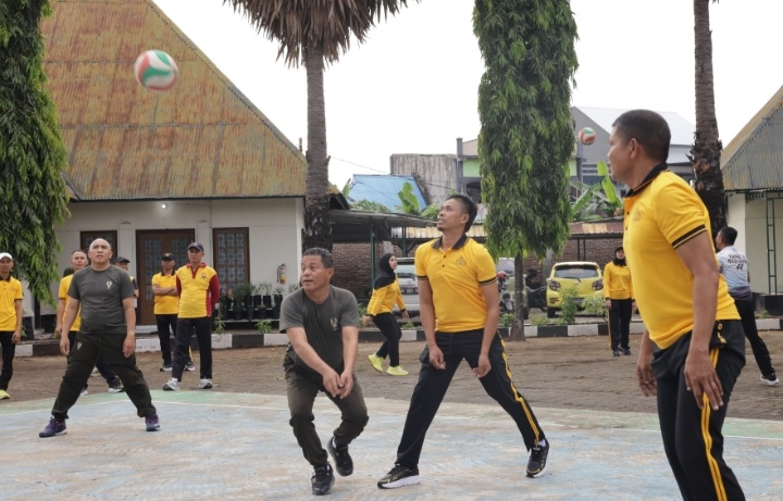 GOWA, Dalam rangka mempererat jalinan sinergitas antara TNI dan Polri, Pejabat Utama (PJU) Polres Gowa bersama Pejabat Utama (PJU) Kodim 1409/Gowa melaksanakan olahraga voli bersama di Makodim 1409/Gowa, Senin (15/9/2025) Sore.
